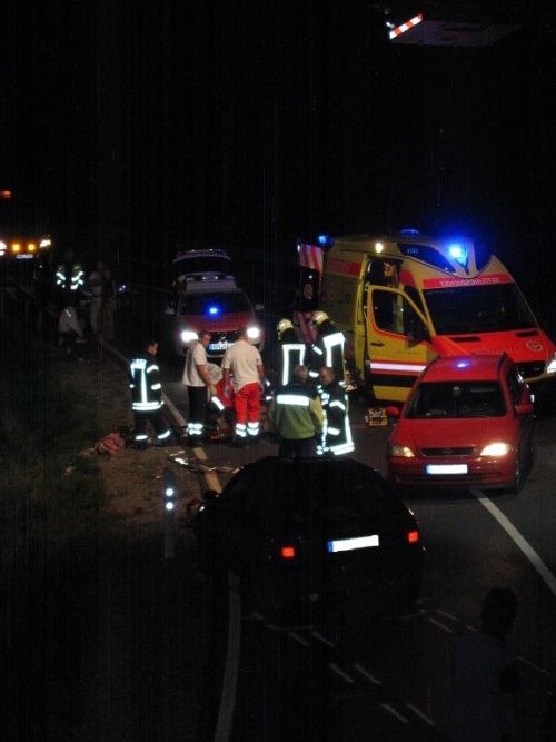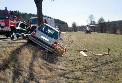 Zu einem schweren Verkehrsunfall wurden wir am 26.03.2012 gerufen. Ein Fahrzeug ist aus bisher ungeklärter Ursache auf gerader Strecke von der Straße abgekommen und frontal gegen einen Baum gefahren. Einer der beiden Insassen wurde so schwer verletzt, sodass er später im Krankenhaus verstarb. Eine weitere leichtverletzte Person wurde im Klinikum Coburg stationär behandelt. Wir öffneten mittels Hydraulischem Rettungsgerät die Fahrertür und stützten das Auto sowie halfen wir dem Rettungsdienst bei der Versorgung der Verletzten.