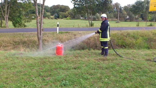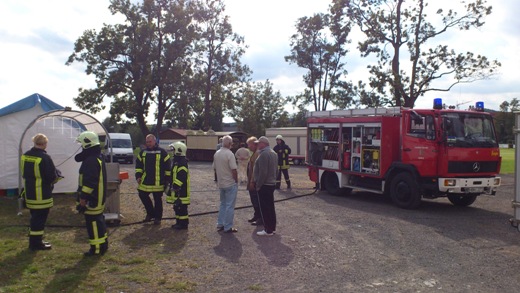Bei einem Verkäufer anlässlich der Montgolfiade, ist auf dem Sportplatz in Heldburg eine Gasflasche in Brand geraten und drohte ein Zelt in Flammen zu setzen. Wir waren mit 2 Fahrzeugen vor Ort und kühlten die Flasche.