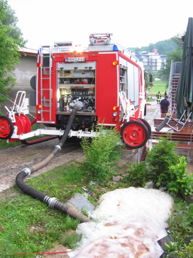 Im Dachstuhl eines Bad Colberger Einfamilienhauses hatte in der Nacht des 04.06.2012 ein Blitz eingeschlagen. Wir konnten den Brandherd schnell lokalisieren und mit wenigen Litern Wasser aus der Kübelspritze schnell löschen.