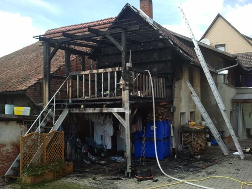 Nach ca. 3 Stunden war das Feuer aus und die Scheune musste mit Hilfe eines Radladers eingerissen werden. Es wurde eine Bewohnerin leicht verletzt und eine Feuerwehrfrau aus Heldburg erlitt Kreißlaufprobleme. Die Höhe des Sachschadens ist unbekannt.